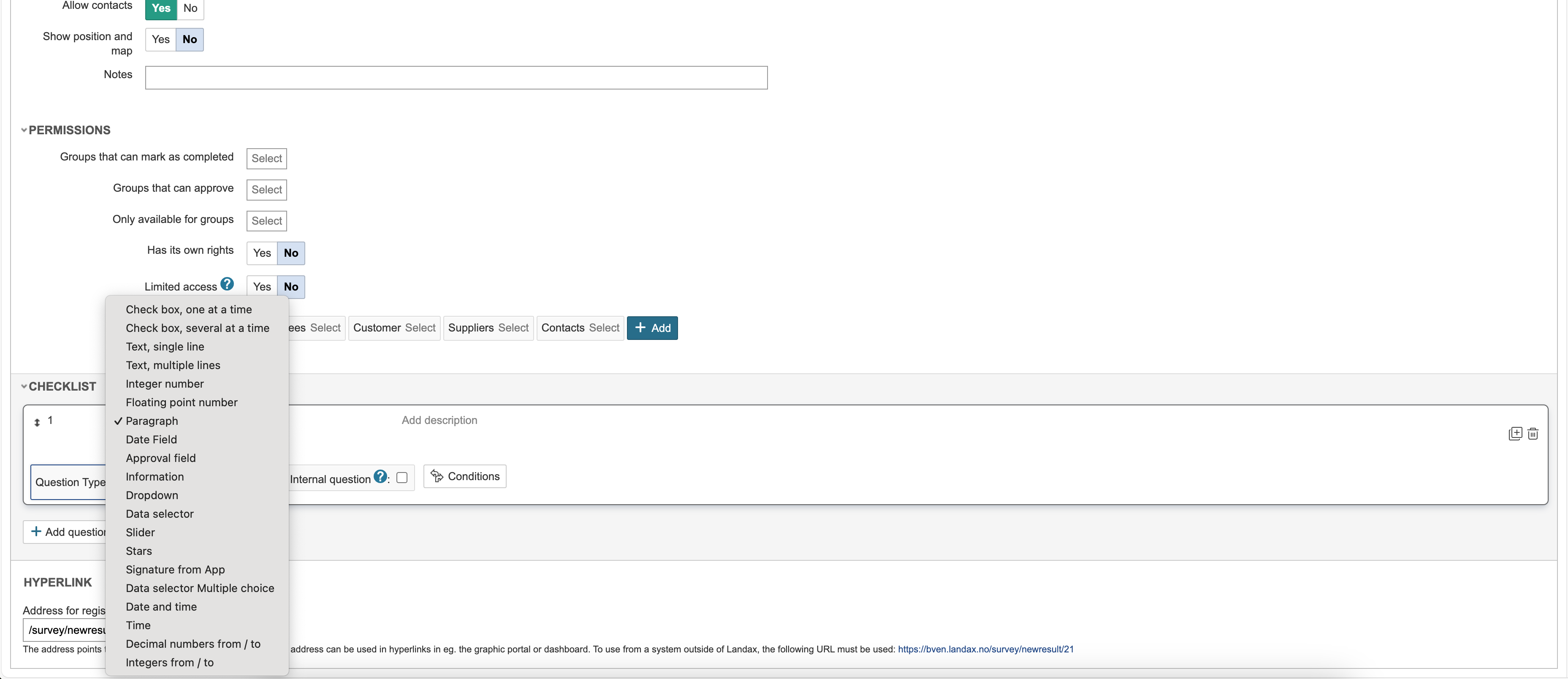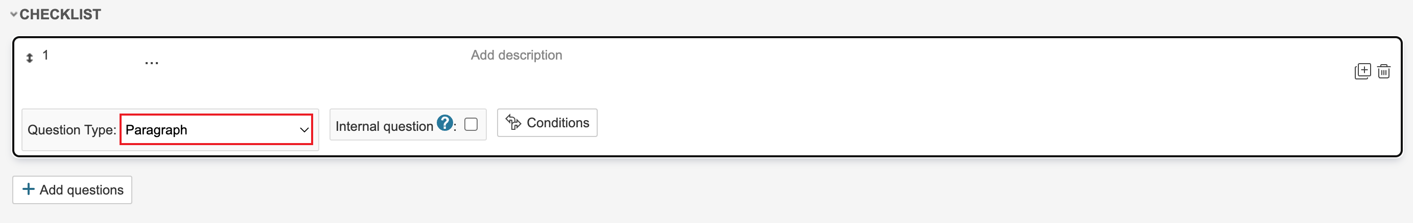 Tip: If the checklist contains different sections, the checklist can be organised using the 'Paragraph' question type.