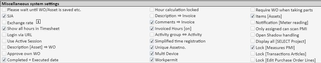 Electronic signature [WO/Checklists]: If this is activated, it will not be possible to approve a WO or checklist without inserting the username and password on approval.