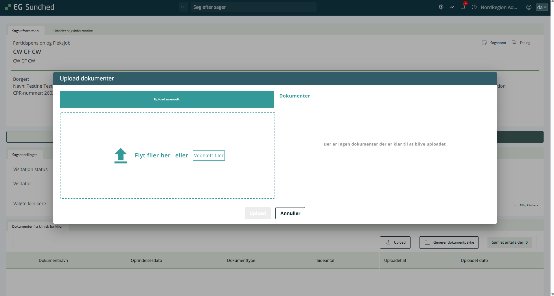 - Klik på Upload nederst på sagens side. Et popup-vindue åbnes: