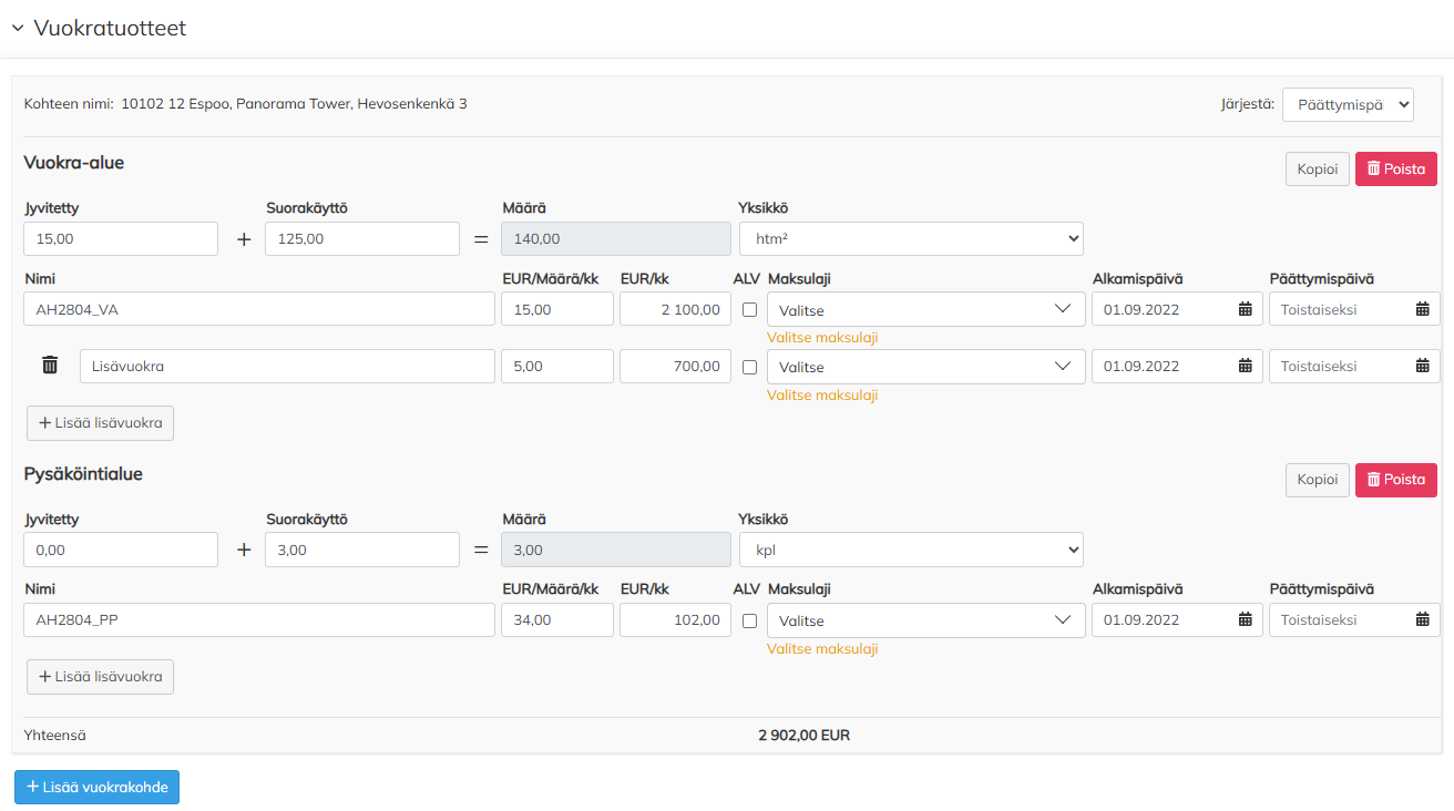 - För att lägga till en extra hyresrad visas en separat knapp för att lägga till ytterligare hyra under huvudraden, genom vilken raderna läggs till i framtiden