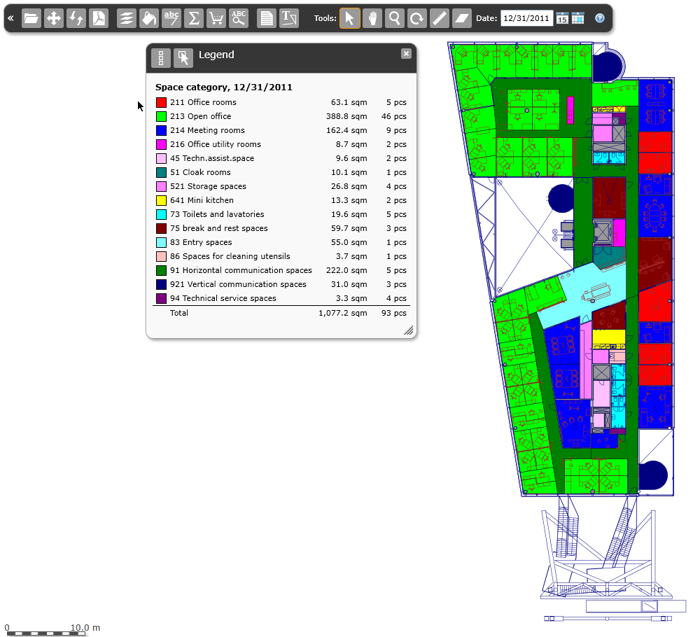 Granska ritningar i din webbläsare och sätt till färger och texter om lokalen och basdata om användarna.