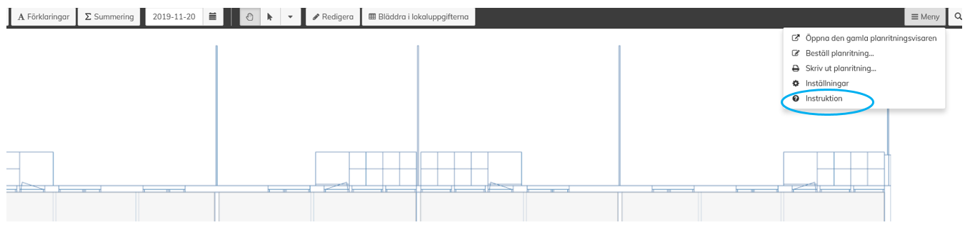 Under menyn som finns i högra övre hörnet i planritningsvyn finns Instruktion, som i detalj förklarar funktionerna i planritningen.