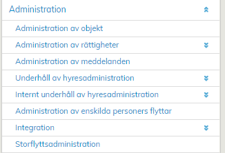 Under rubriken Administration av objekt hittar du olika hierarkier och behörigheter samt verktyg för administration av ändringar.