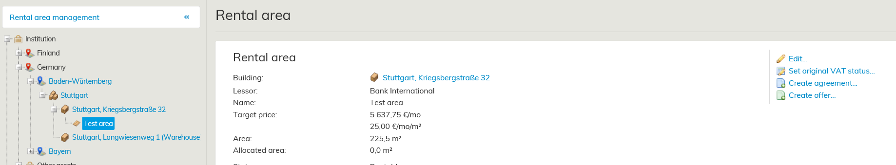 If you want to create an offer for more than one space, you can add rental areas in the offer form or create the offer using the building summary page.