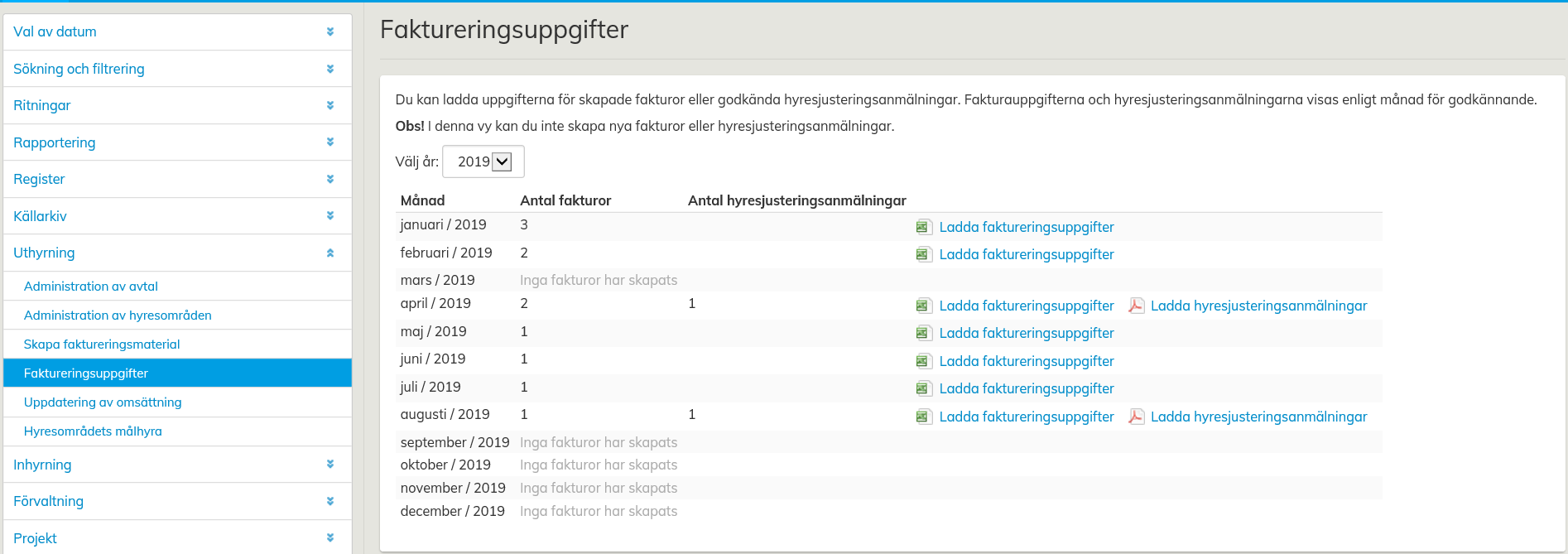 Rapporten Faktureringsuppgifter kan fortfarande laddas ned i samband med fakturakörningen.