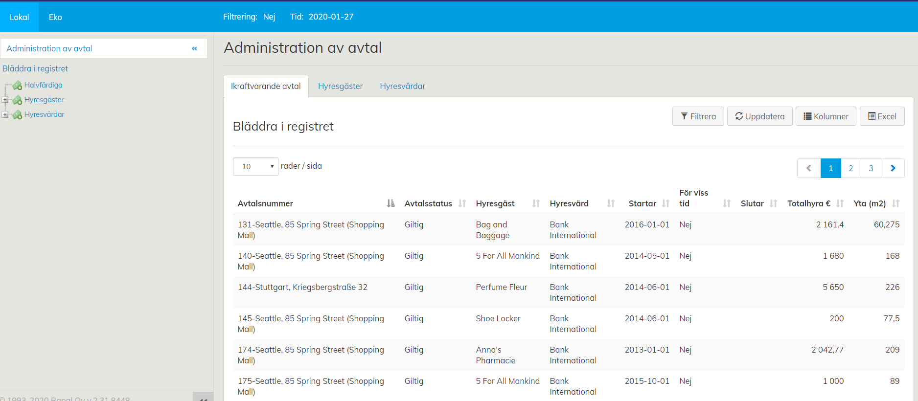 I vyn Administration av avtal kan du granska, redigera och skapa hyresavtal. I vyn Administration av avtal visas gällande avtal och avtalsutkast vid granskningsögonblicket.