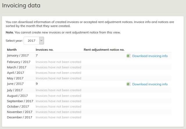 Invoicing data can be exported to Excel on the Invoicing data page, in the Outrent menu, at any time after invoicing.