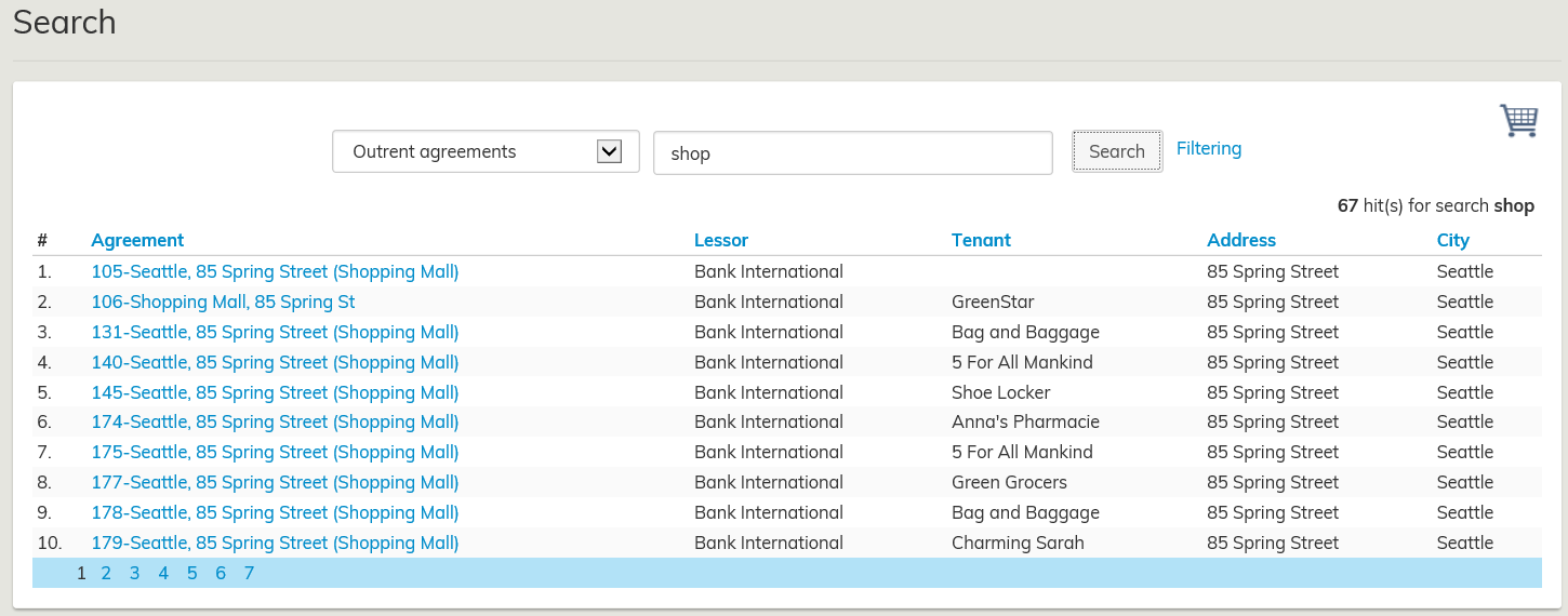 Du kan söka efter till exempel en specifik byggnads hyresområden. Sökningen behandlas närmare i