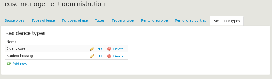 Vyn Administration av val finns här: Administration – Underhåll av hyresadministration – Boendetyper.