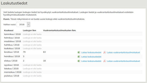 Laskutustiedot-raportin voi ladata edelleen myös laskutusajon yhteydessä.
