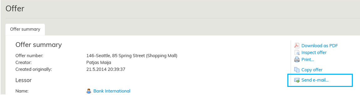 Tryck på knappen Skicka offertblankett för att skicka offerten via e-post.