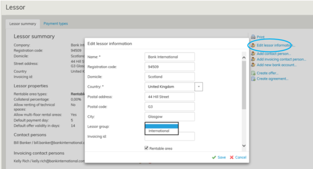 You can also select a lessor group for an existing lessor.