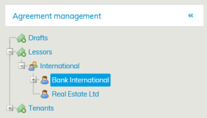 When a lessor belongs to a certain lessor group, it is listed under that lessor group in the Agreement management view.