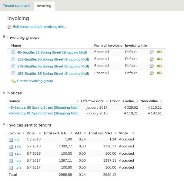 Sometimes you might have to edit the invoicing information in a certain agreement. You can edit the invoicing information in an agreement from the tenant information page.