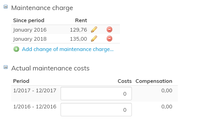 Ändring av underhållshyra läggs till om beloppet för underhållshyra ändras.