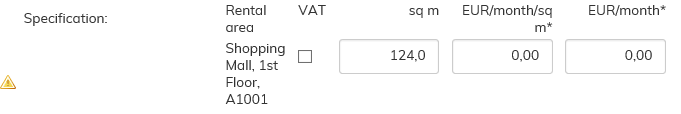 För musen över triangeln för att se en text som förklarar vad som måste beaktas om hyresområdet inkluderas i avtalet. Om omständigheterna inte förhindrar uthyrning kan du koppla det aktuella hyresområdet till avtalet.