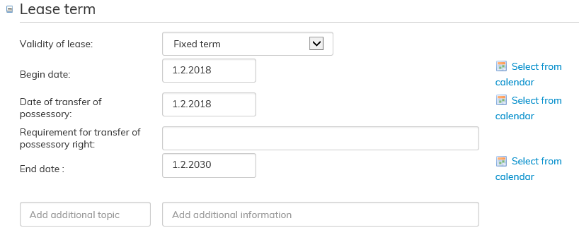 If the lease agreement is valid for a fixed term, remember to determine the end date.