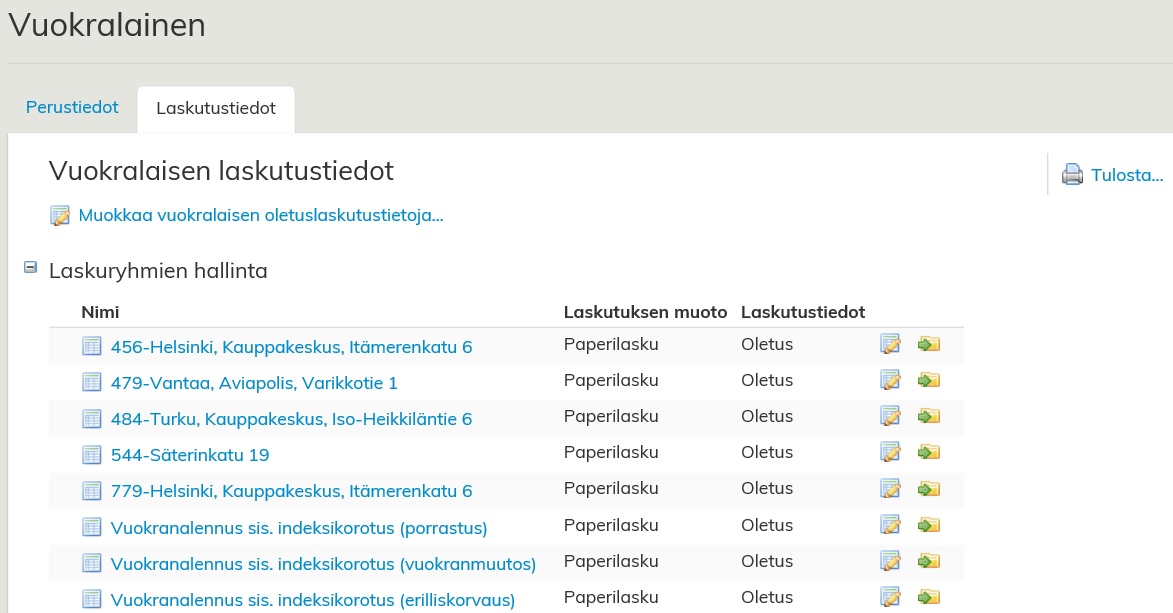 Kun haluat muokata asiakkaan laskutustietoja, valitse ensin vuokralaisen
