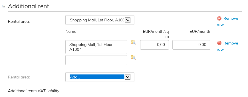 If the rental area contains additional rents, add them here by selecting the rental area from the pull-down menu.