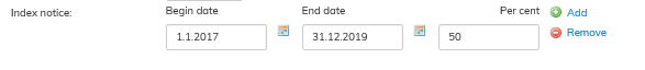 It is also possible to select future index value for base index, by choosing the desired year and entering the value 0. The rent will be adjusted, once the value for the desired year has been entered in the system.