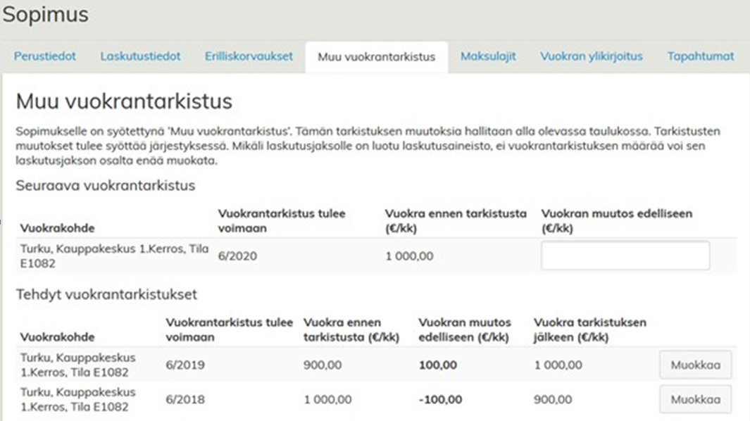 Efter detta får användaren behandla följande avtalsenliga Annan hyresjustering.