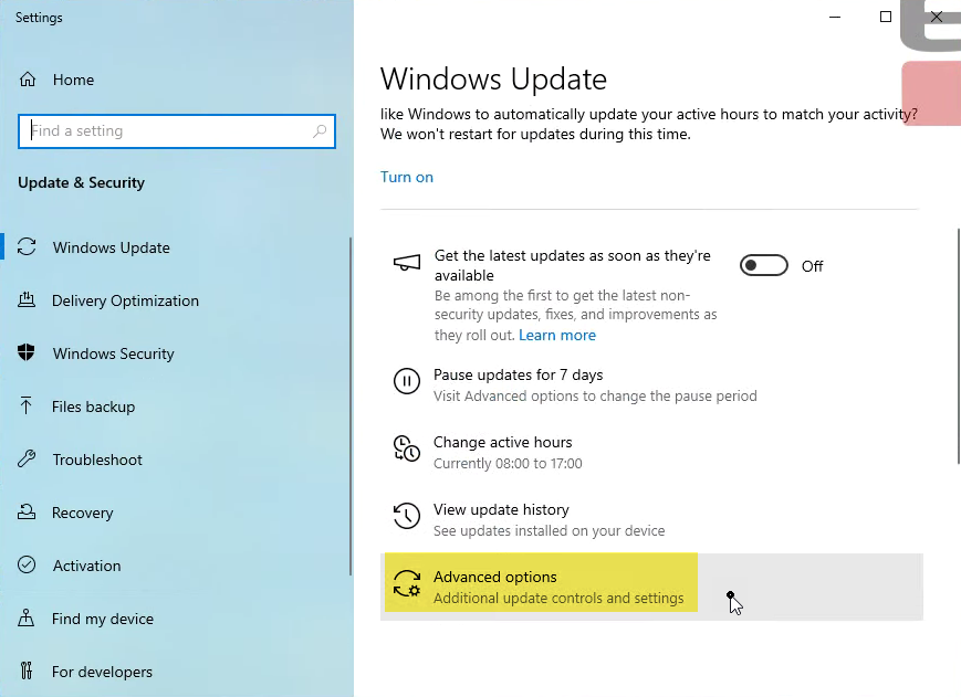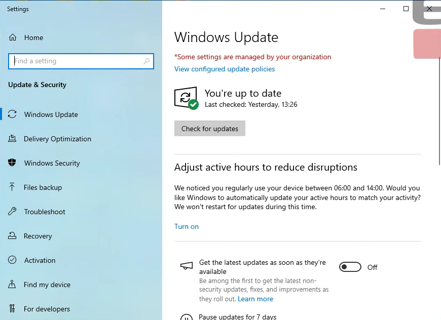 - Open the Windows Update settings by clicking "Start / Settings / Update & Security". You will see the following window.
