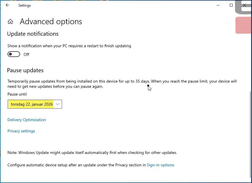 - When reboot is done please check that the Windows update has been uninstalled and that further updates have been paused.
