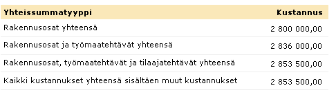 Kuva 8. Talo-2000 laskelman kustannusten muodostuminen