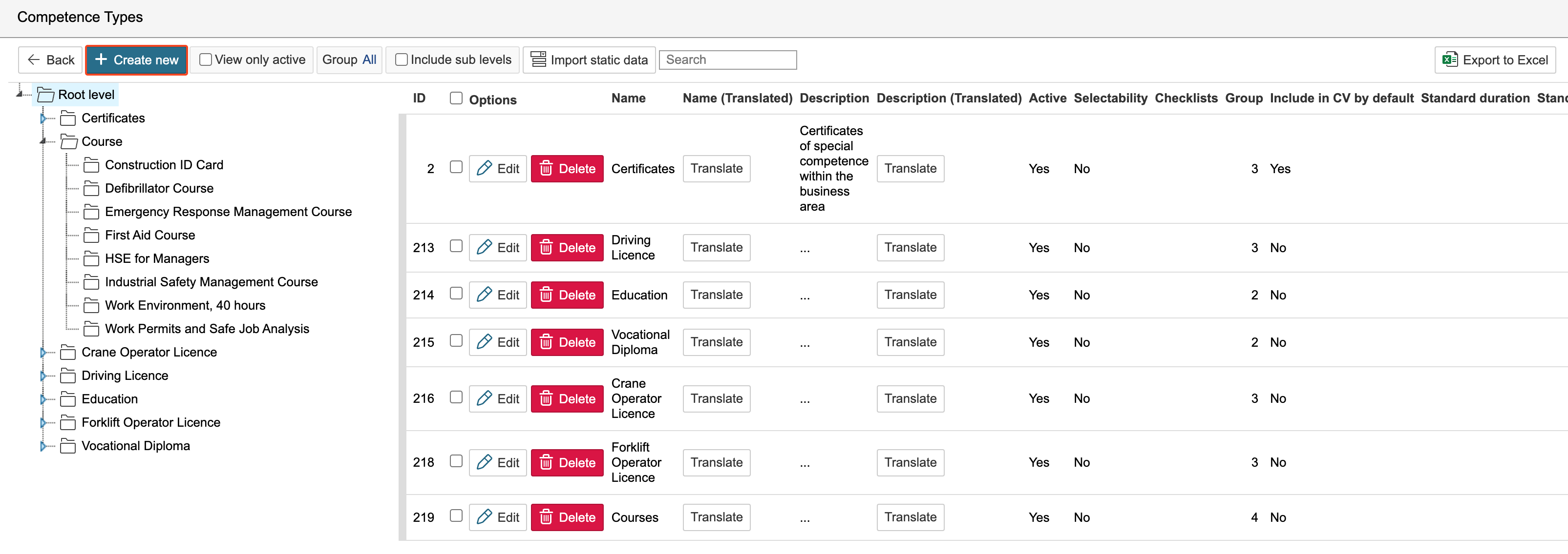 Info: When defining a competence requirement for an employee, competence records are created based on the types specified in the requirement.