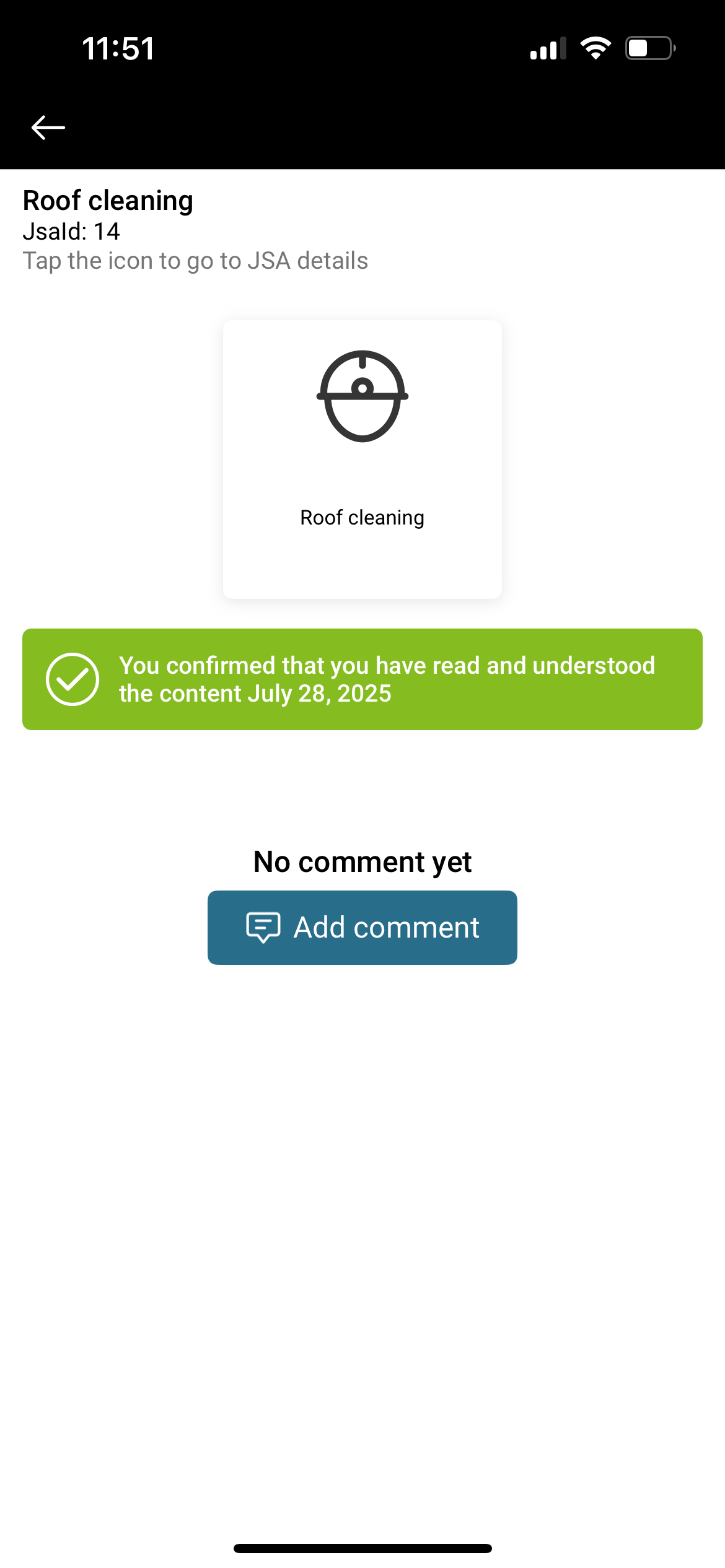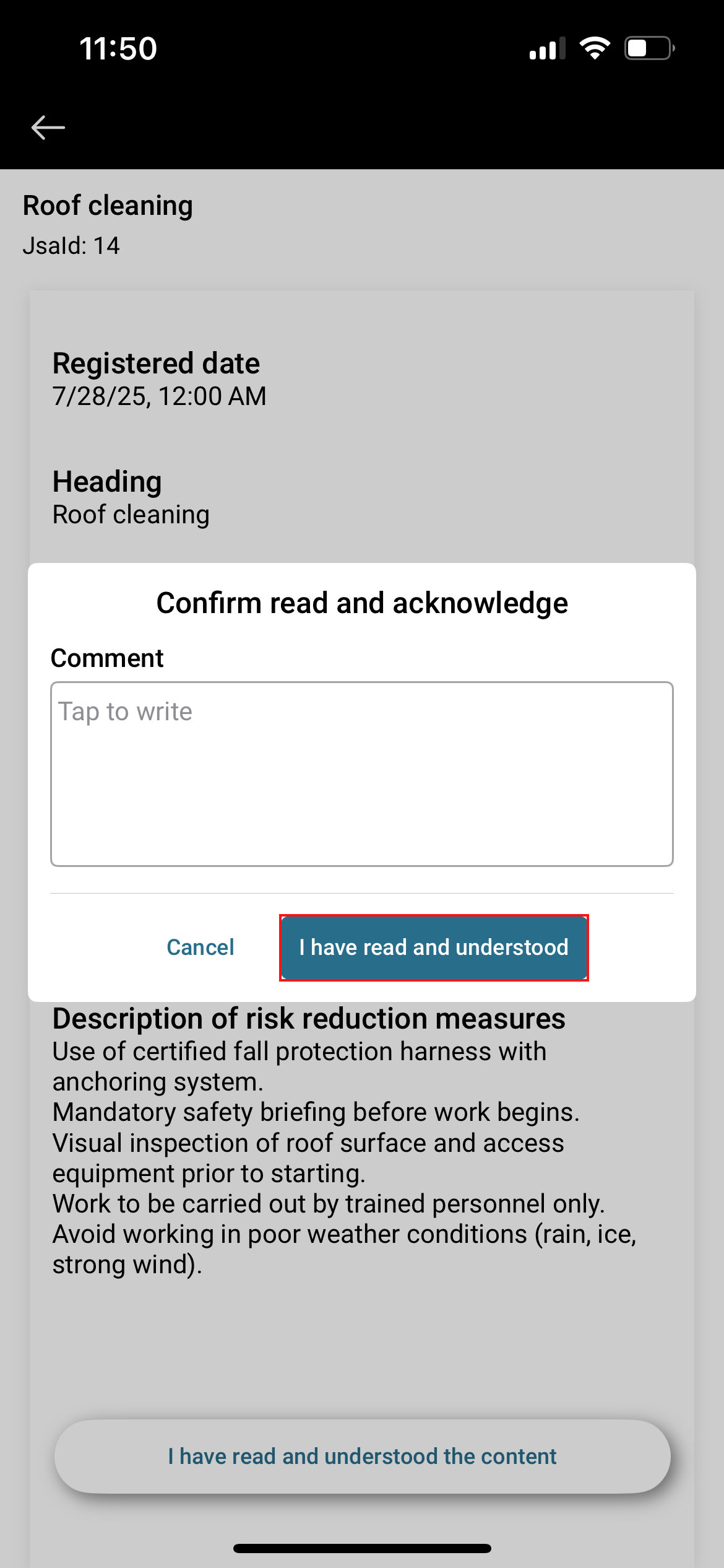 3. Read the JSA and tap I have read and understood the content if you understand and validate the content.