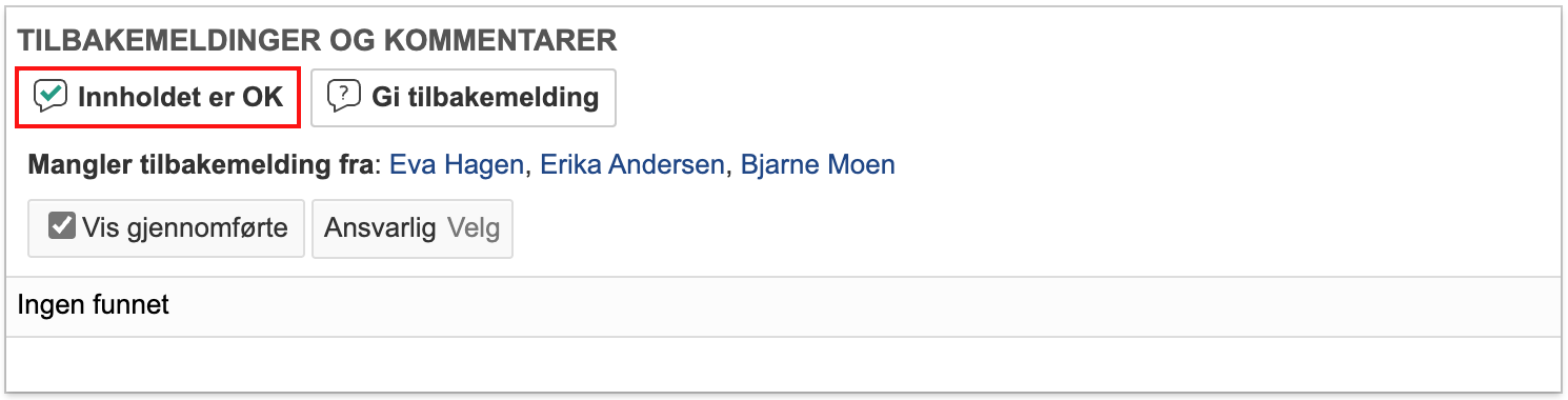 - Hurtigknapp for tilbakemelding: På dokumenter med status "Til høring" finnes det nå en hurtigknapp for å bekrefte at innholdet er OK.