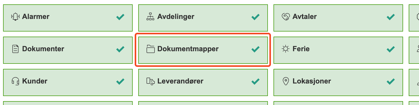 - Rettigheter på dokumentmappe: Du kan sette opp rettigheter for dokumentmapper og blant annet styre at brukere kun har tilgang til å se mapper tilknyttet egen avdeling.