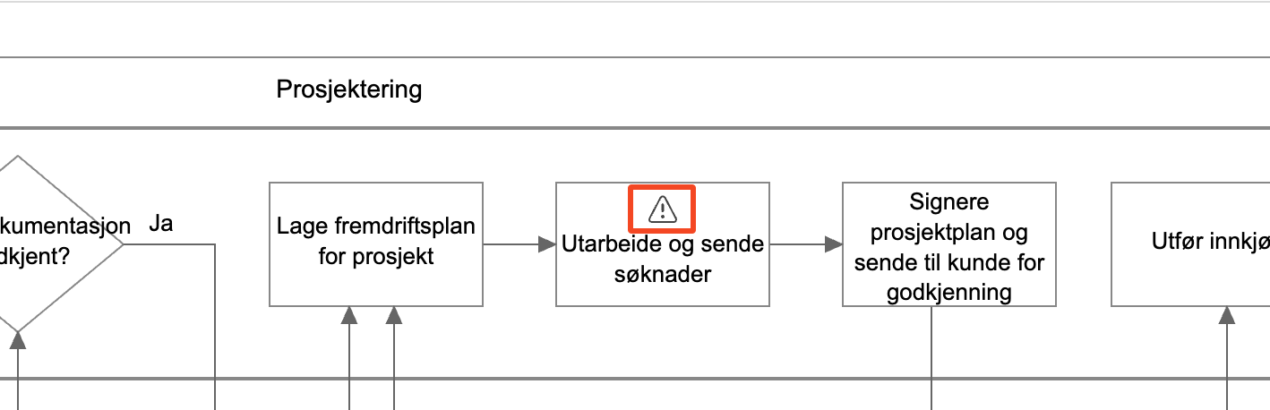 - Ikon for risiko: Dersom en boks i et flytkart har tilknyttede risikoanalyser kan du velge å kun vise et ikon. På den måten kan du enklere vise i flytkartet at aktivitetene har tilknyttet risiko.