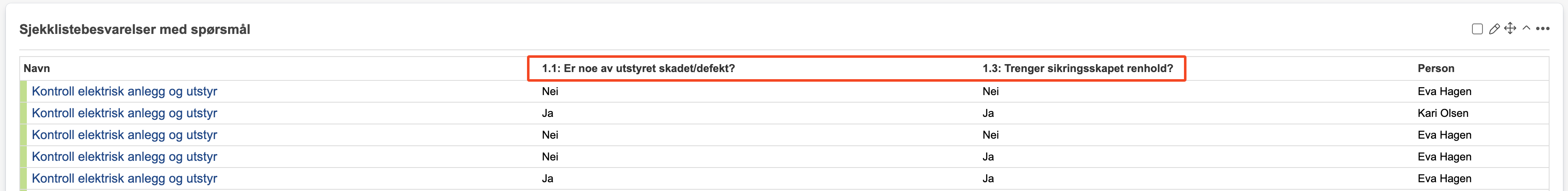 - Sjekklistegadget: Du kan legge til spørsmål og svar fra en sjekkliste i gadget på dashbord. Gadgeten heter "Sjekklistebesvarelser med spørsmål".