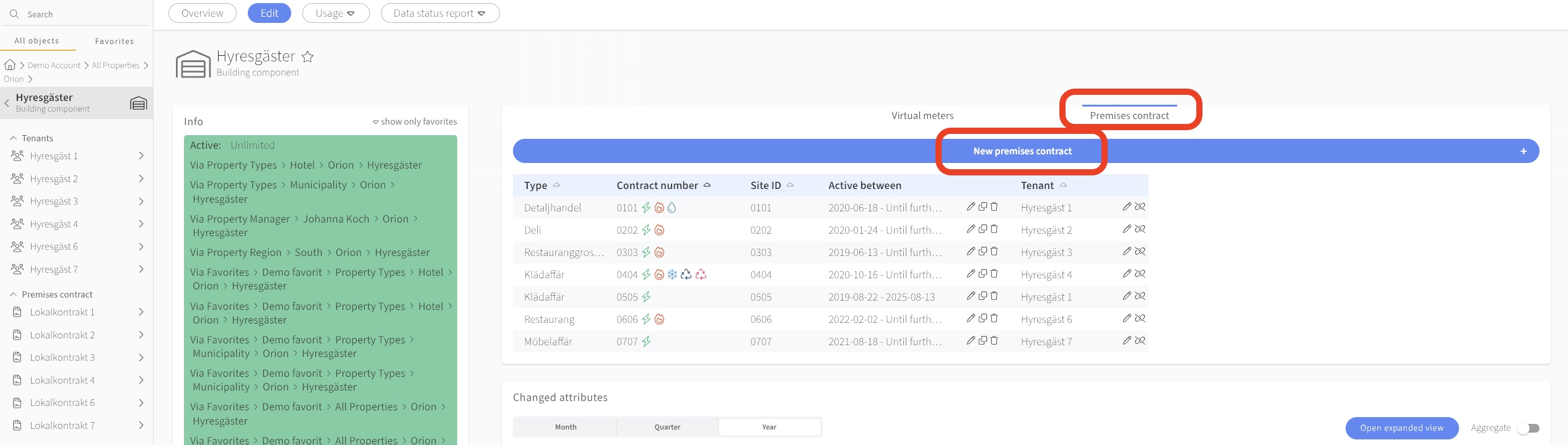 Navigate to the property or building where you want to add a tenant or a premise contract.