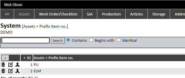 With respect to managing assets by item, a prefix can be set up to autogenerate item numbers. Examples of this use could be ‘ELM’ (electric motor), ‘PU’ (pump).