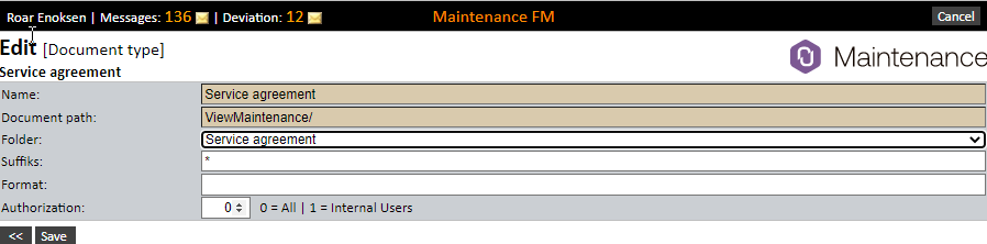 After saving the document type, open this in edit mode. If e.g. the name is also inserted in the document path, and the system settings are configured so that the path will include document type, a folder will be created under View Maintenance/ with this name where the documents for this type are stored.