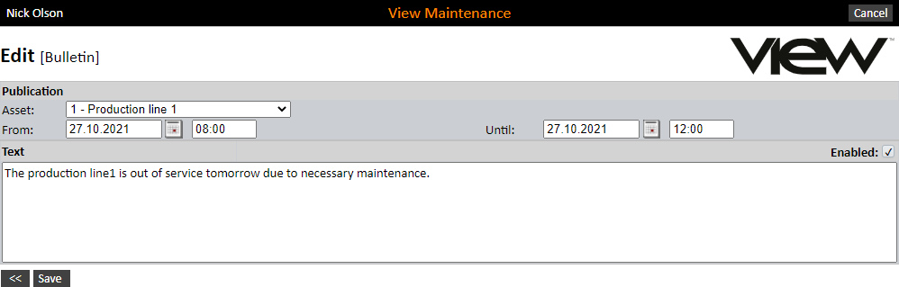 Example of creating such a bulletin. Remember to check off ‘Activated’, so that it automatically starts to run across the screen at the desired time.