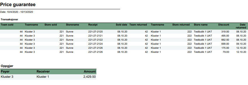 A new report is created which shows how much each business units owes each other, based on returns with reason code 6 (Price guarantee).