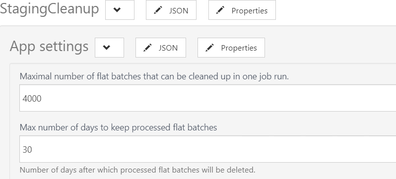 New app setting has been added to StagingCleanup job configuration 'Max. number of days to keep processed flat batches'. By default the value of this parameter is 30 days. StagingCleanup job is deleting all successfully processed batches older than number of days set in this parameter.