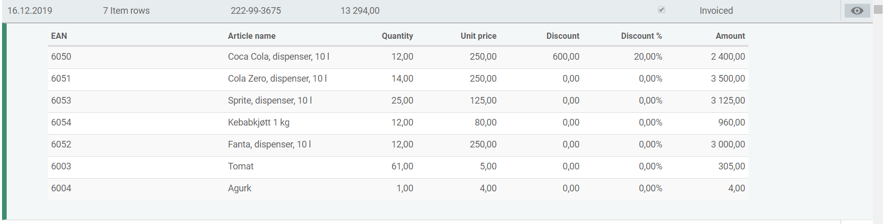 Data type - Expiration or best before. Default all. | Per item / Price inc VAT - Item price including VAT. |
