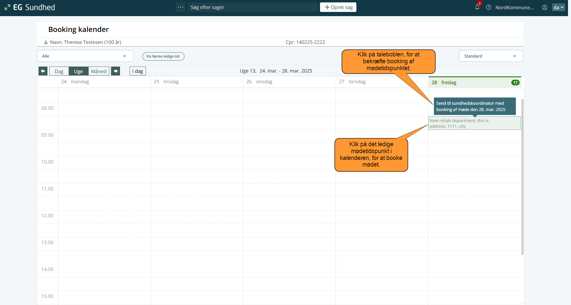 3. Find en ledig dag og tidspunkt i kalenderen, hvor du kan booke et møde til sagen, og klik på det i kalenderen.