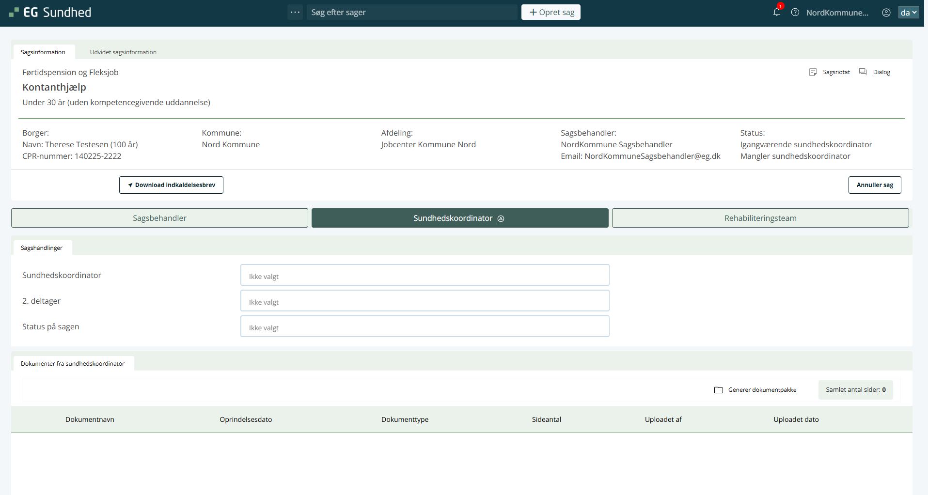 5. Du bliver nu ført tilbage til sagen, og sagens status har nu ændret sig til Igangværende sundhedskoordinator