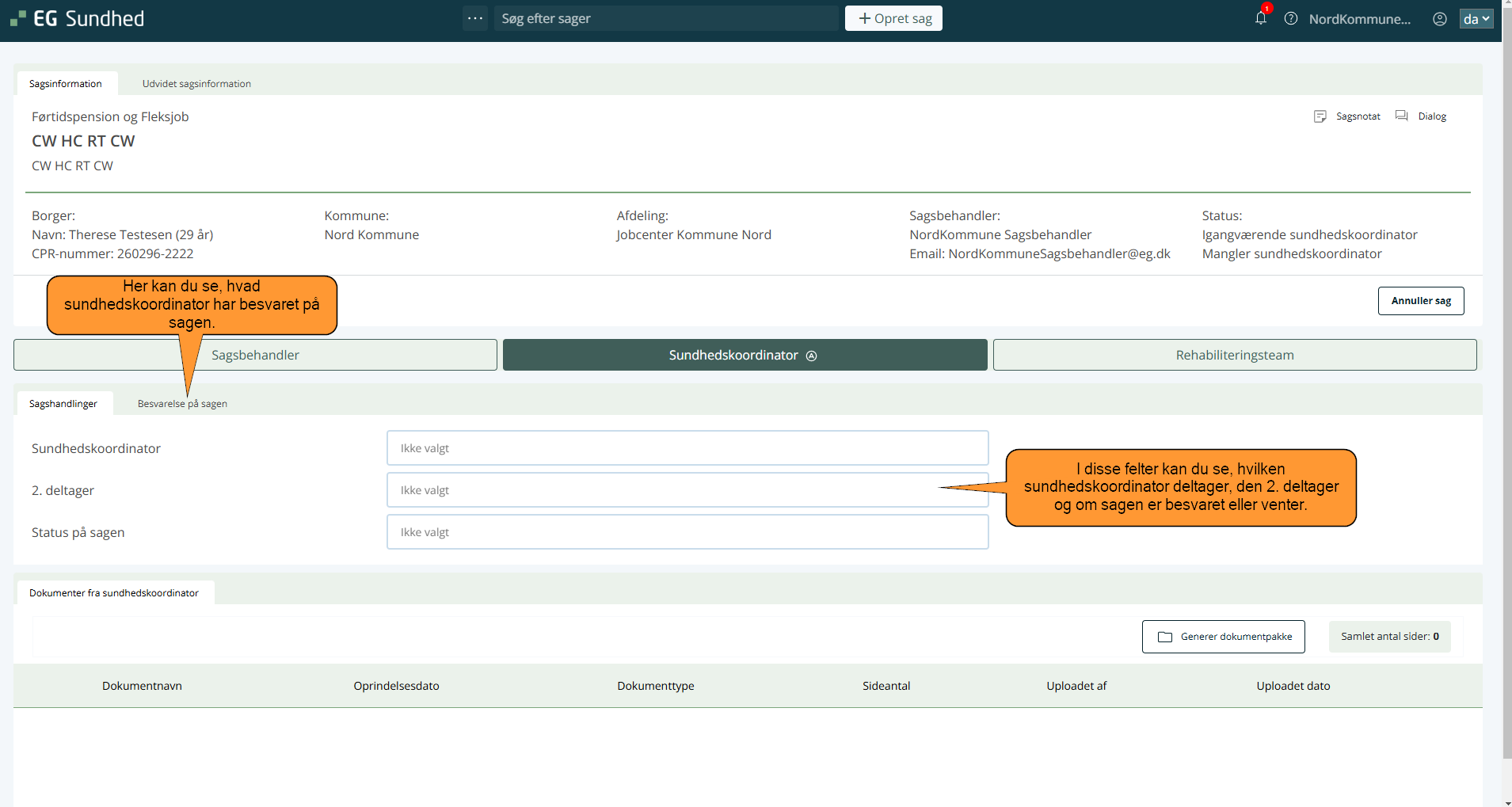 1. Når du har sendt sagen videre til sundhedskoordinator, vil du se følgende: