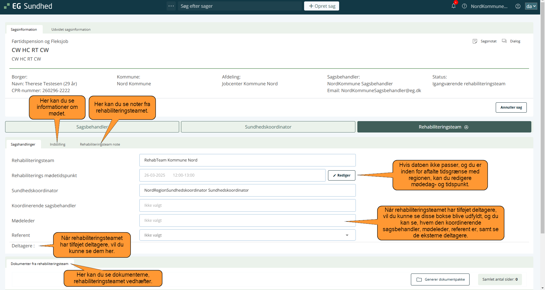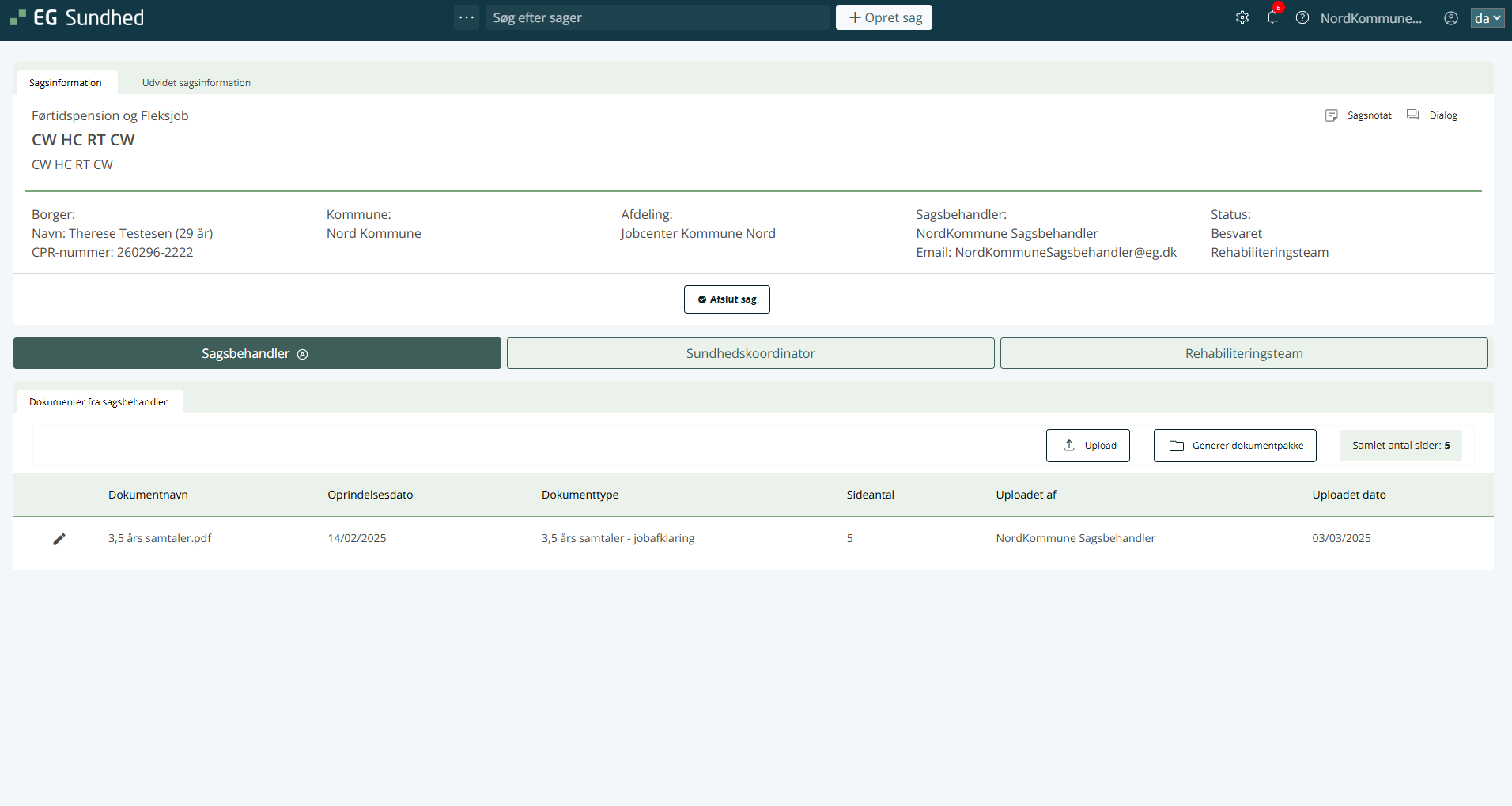 3. Det er nu rehabiliteringsteamets ansvar, at udfylde sagen. Klik her for at læse, hvordan rollen som rehabiliteringsteam udfylder sagen.