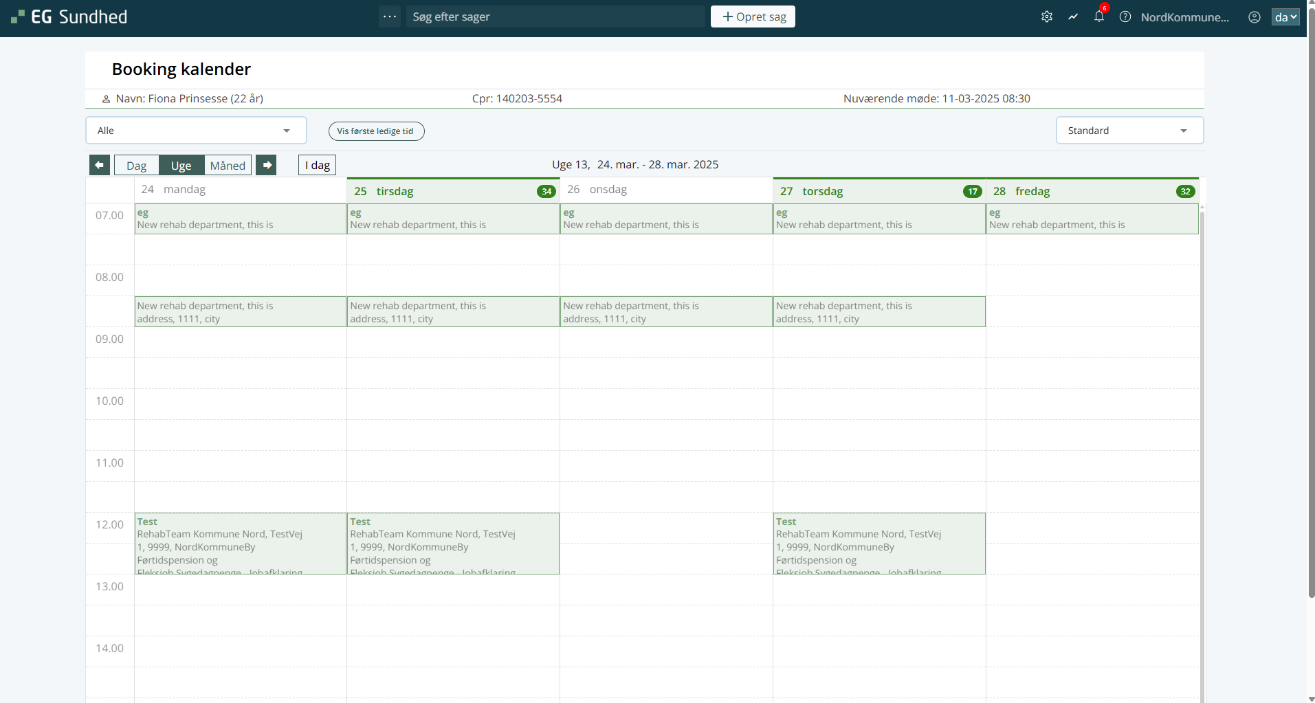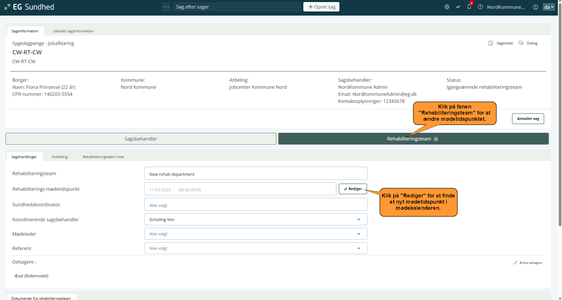 - Ud for feltet Rehabiliterings mødetidspunkt skal du klikke på knappen Rediger. Du bliver nu ført til mødekalenderen: