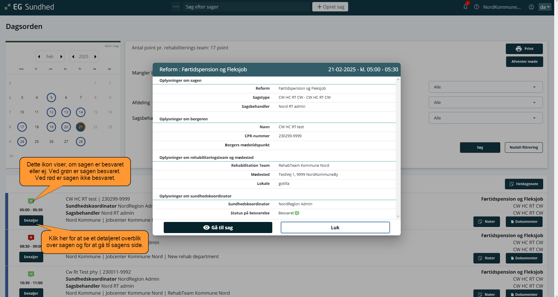 • Du kan nemt og hurtigt danne dig et overblik over, om sagen er besvaret inden mødet. Det kan du via ikonerne .