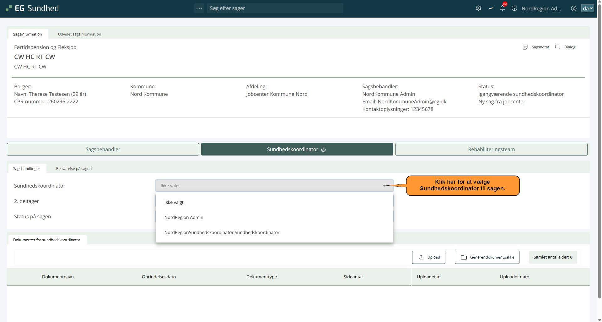 1. Du skal nu vælge sundhedskoordinator. Det gør du ved at klikke på drop-down menuen ud for Sundhedskoordinator.
