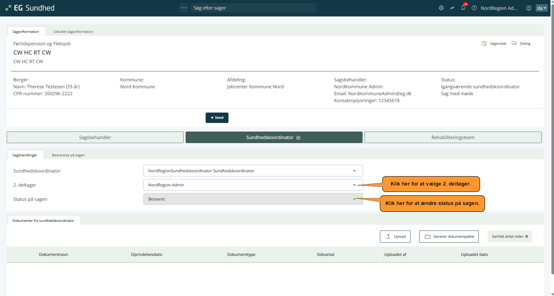 Når du som sundhedskoordinator får en sag fra kommunen, har du trin, du skal gennemgå. Disse trin er Sagshandlinger og Besvarelse på sagen.
