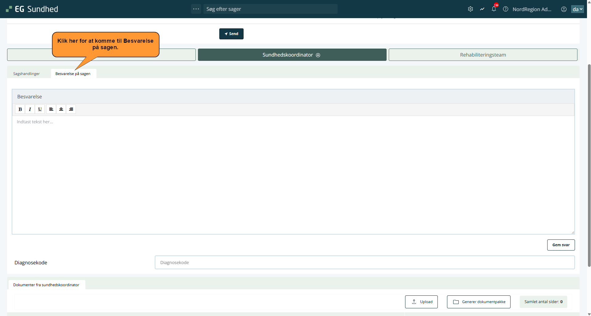 - Klik på fanen Besvarelse på sagen. Du kommer til følgende side: